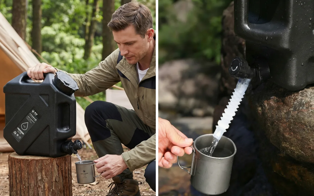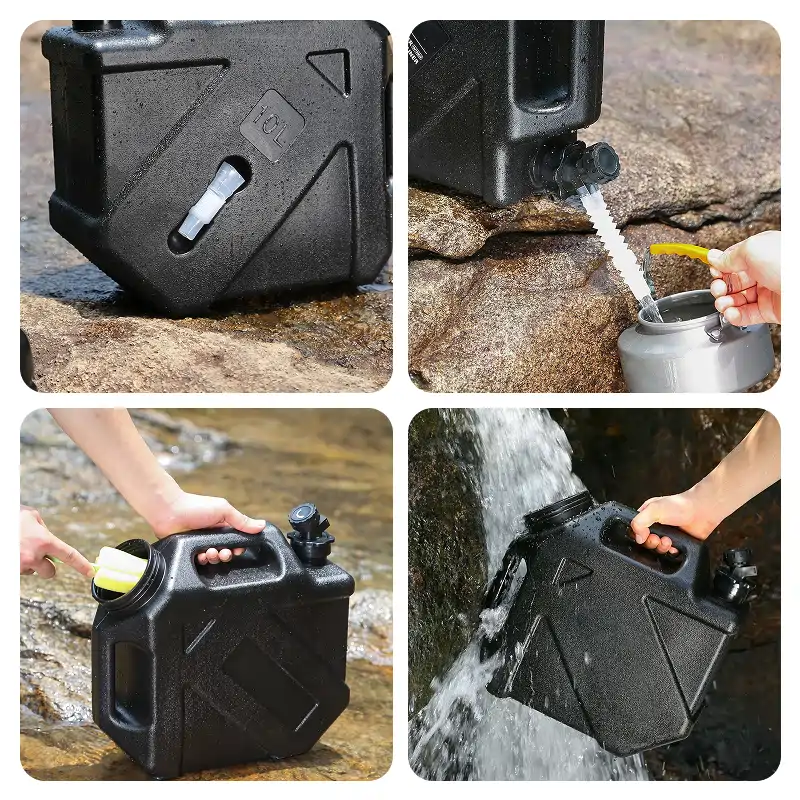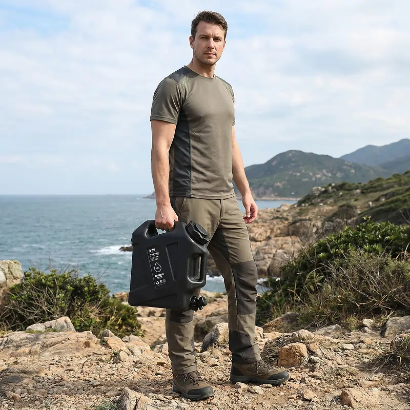 J’ai acheté ce conteneur robuste pour camper dans le désert. Il a bien supporté les secousses dans la benne du pick-up, et le tuyau a facilité le remplissage de petites bouteilles.
