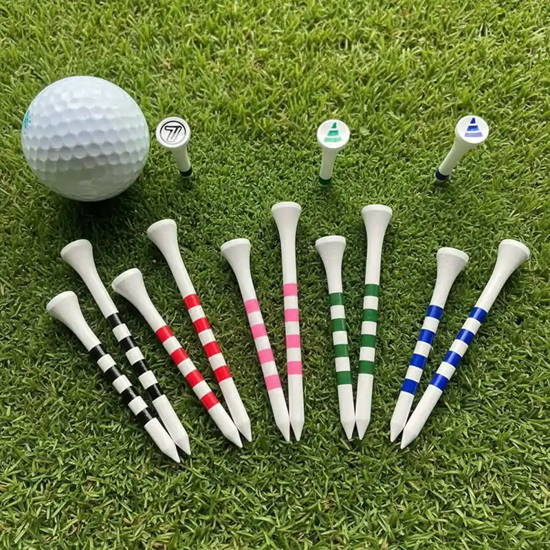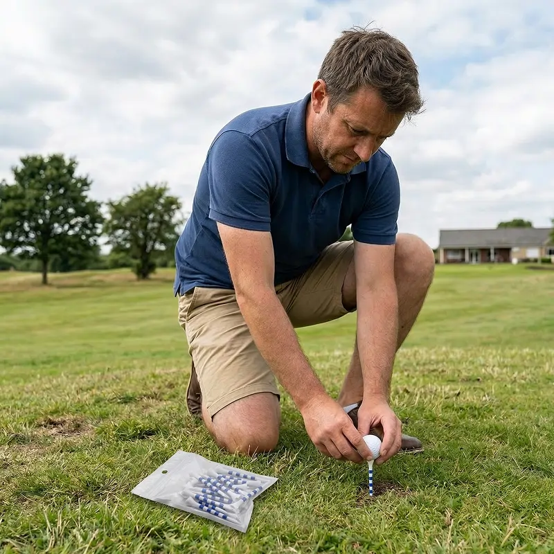 J’utilise la même poignée de tees depuis des semaines maintenant. Ils tiennent bien lors des matinées humides, s’enfoncent facilement dans un sol dur, et les anneaux colorés rendent mon installation simple et répétable.