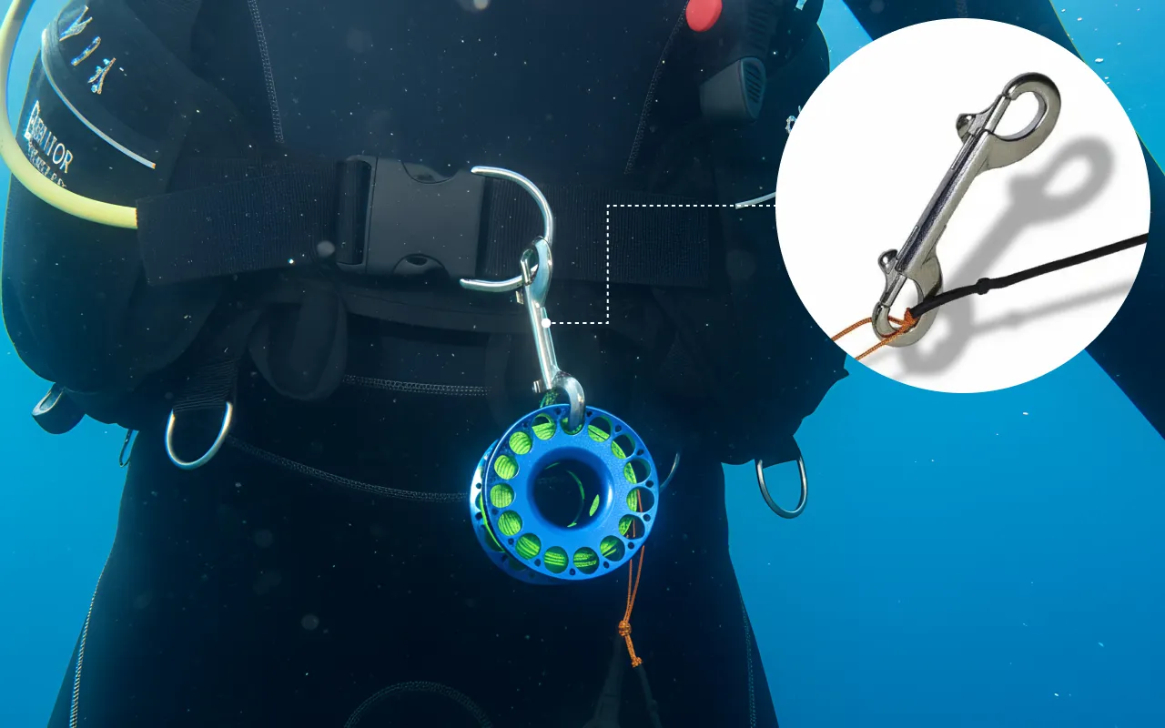Le mousqueton à ressort en acier inoxydable se fixe rapidement à votre anneau en D. Aucun réglage fastidieux, vous pouvez donc vous concentrer sur votre exploration sous-marine.