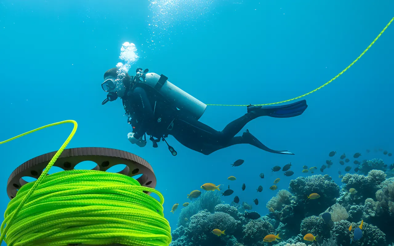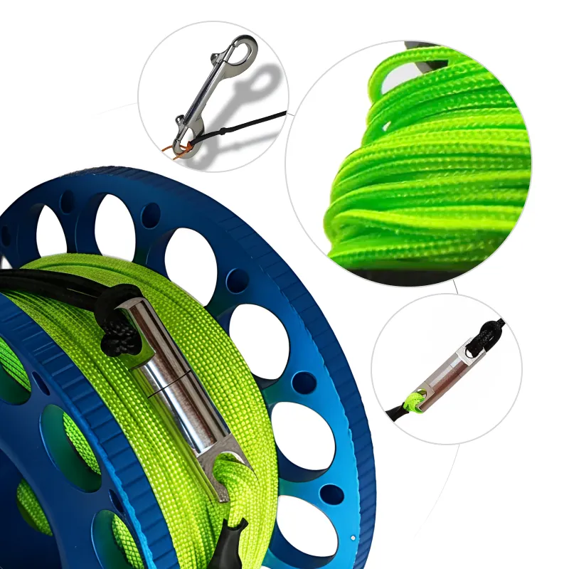 La cordelette orange vif en polyester se distingue dans toutes les conditions. Vous retrouvez toujours votre chemin, même dans une eau trouble ou des grottes sombres.
