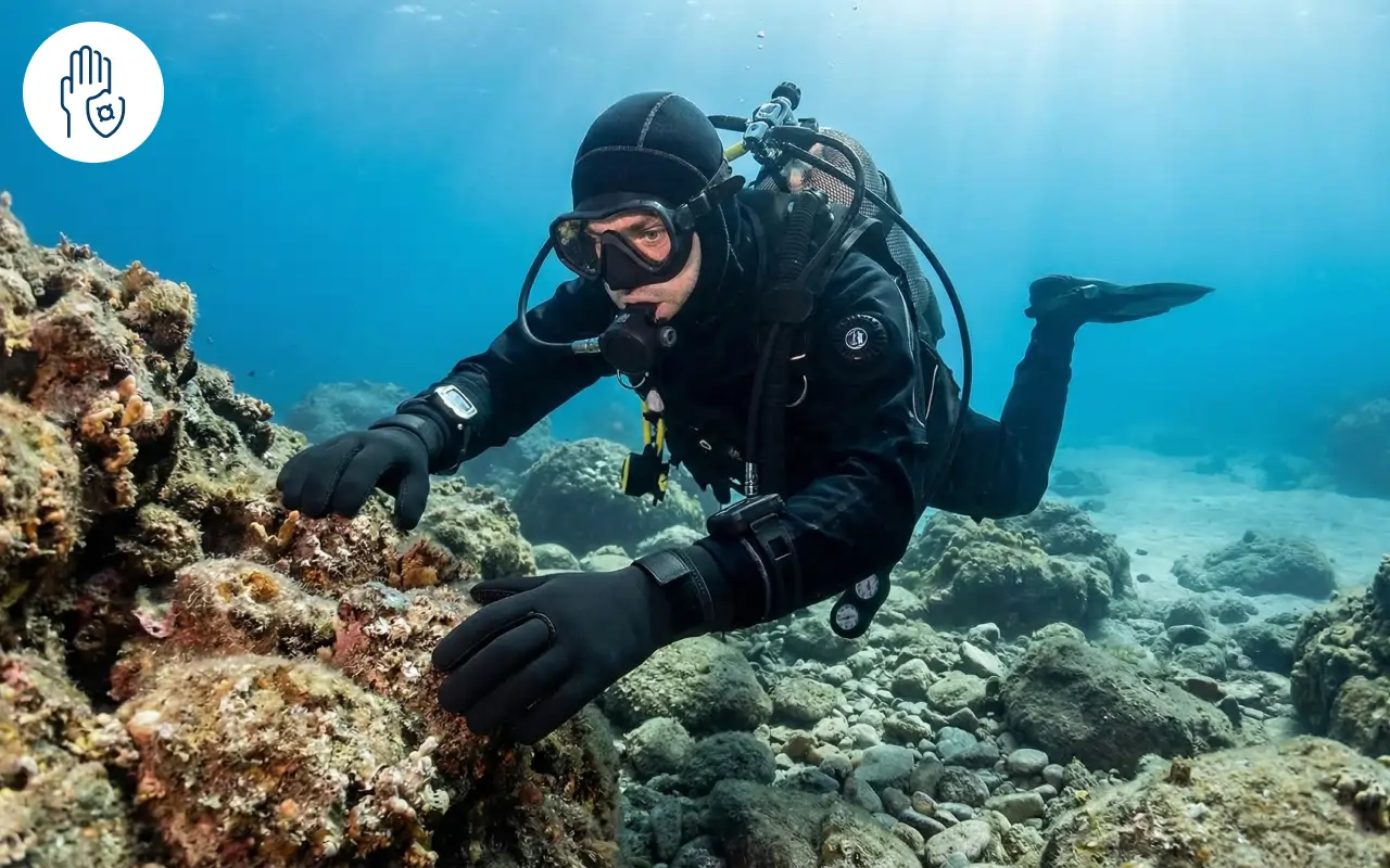 Le design antidérapant de la paume garantit qu’aucun objet ne glisse de votre main. Tenez votre équipement ou explorez les fonds marins en toute confiance.