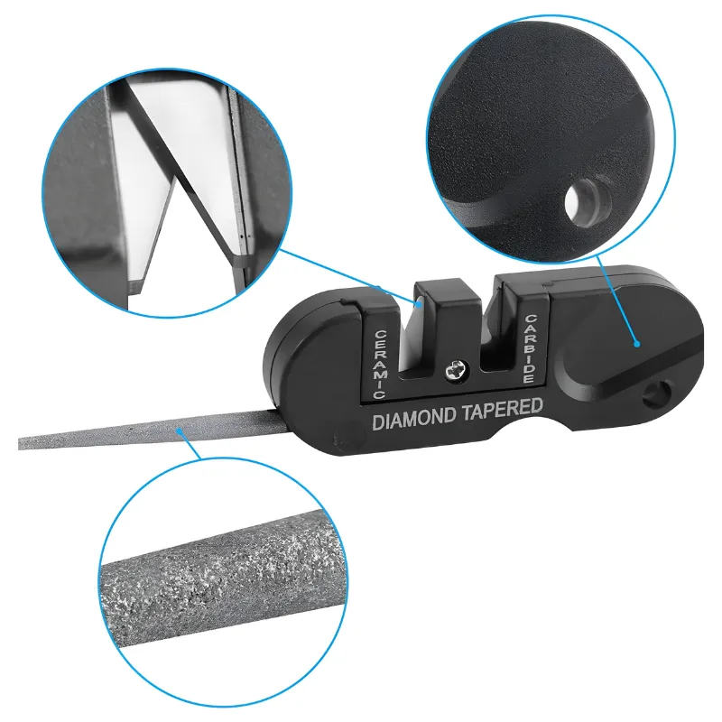 Aiguisez, polissez et entretenez les lames droites et dentelées. Chaque fente garantit des résultats sûrs, rapides et efficaces.