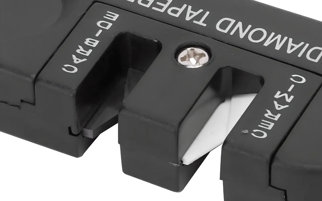 Après des mois d’utilisation, l’aiguiseur fonctionne toujours aussi bien. Les fentes sont étiquetées donc je sais toujours laquelle utiliser.