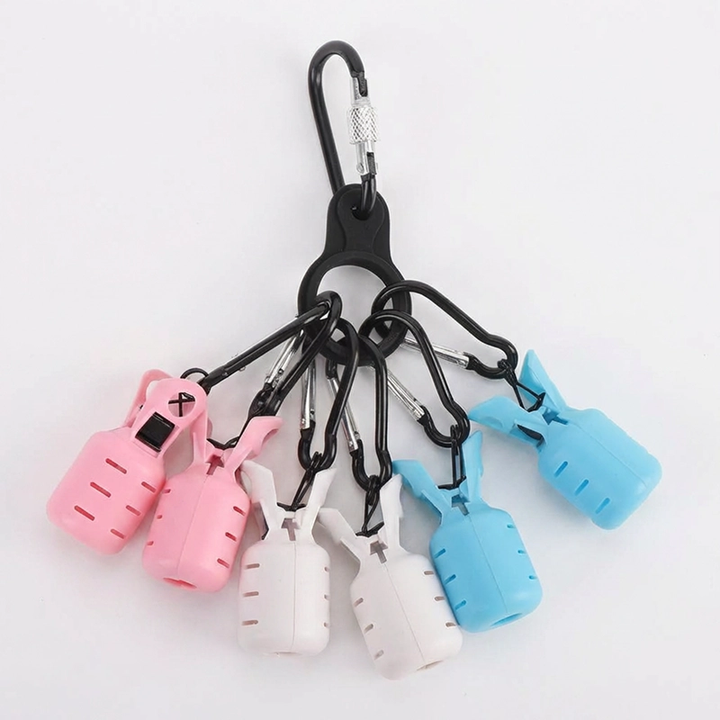 J’accroche les six capuchons au mousqueton et je les suspends à mon sac de pêche. Ils se clipsent rapidement sur les hameçons et empêchent tout de s’emmêler.