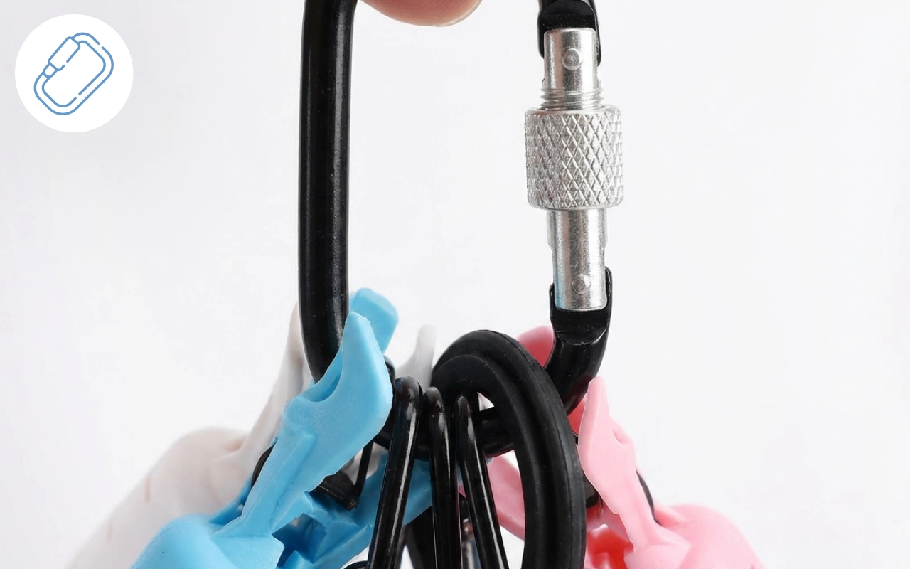 Rangez l’équipement de pêche proprement et gardez tout bien organisé à chaque sortie. Le mousqueton maintient tout ensemble, ce qui permet de gagner de la place dans votre kit.
