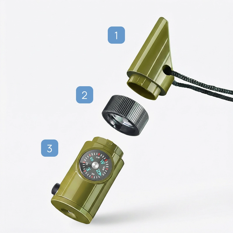 Un signal sonore puissant, une torche lumineuse et un miroir pratique attirent rapidement l’attention. Rangez vos petits essentiels en toute sécurité, prêts à être utilisés à tout moment.