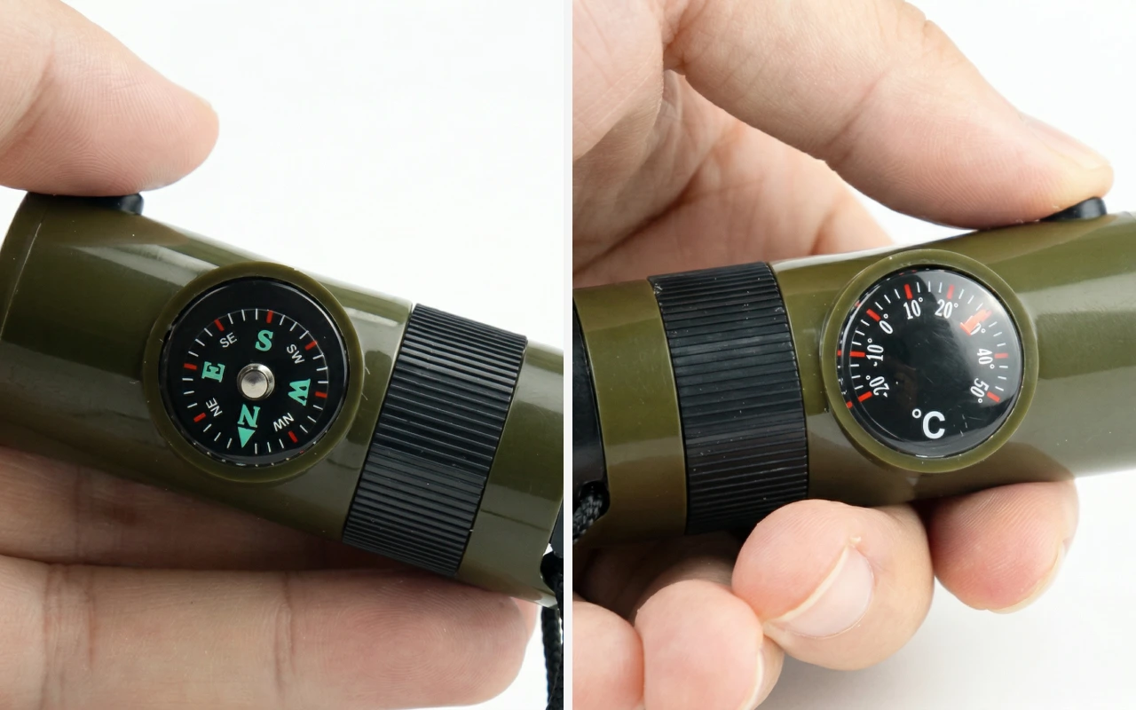 J’ai pris ce sifflet pour les sorties pêche de mon fils adolescent. Il utilise le thermomètre pour vérifier la fraîcheur du matin et le signal sonore puissant pour joindre ses amis de l’autre côté du lac.