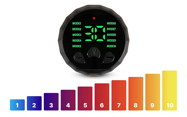 Réglez l'intensité selon votre niveau préféré. Commencez doucement et augmentez à mesure que vos abdominaux se renforcent.