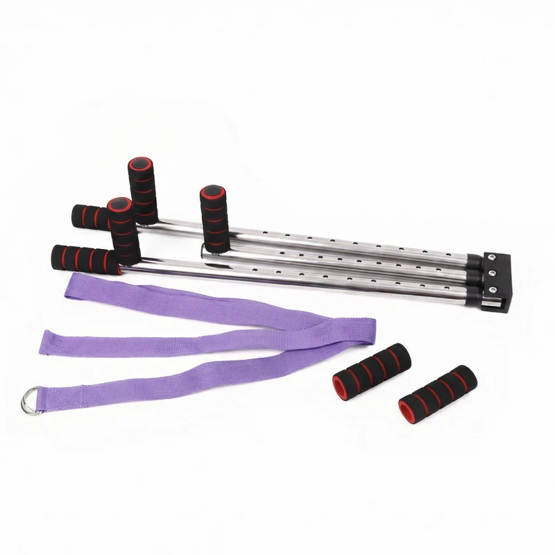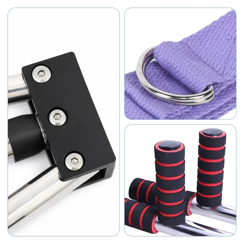 Barres en acier inoxydable et poignées rembourrées offrent un soutien durable. La mousse douce amortit les pieds pour une séance d'étirement sans douleur.