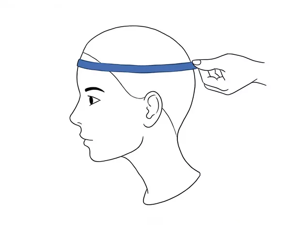 - 2. Enroulez le ruban à mesurer autour de votre tête, en le positionnant juste au-dessus de vos sourcils et de vos oreilles, et autour de la partie la plus large à l'arrière de votre tête.