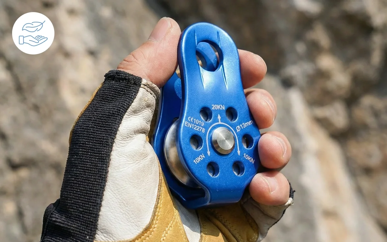 La poulie lisse permet à la corde de glisser doucement à chaque fois. Réduit la friction pour une progression plus rapide et plus sûre sur les parois abruptes.