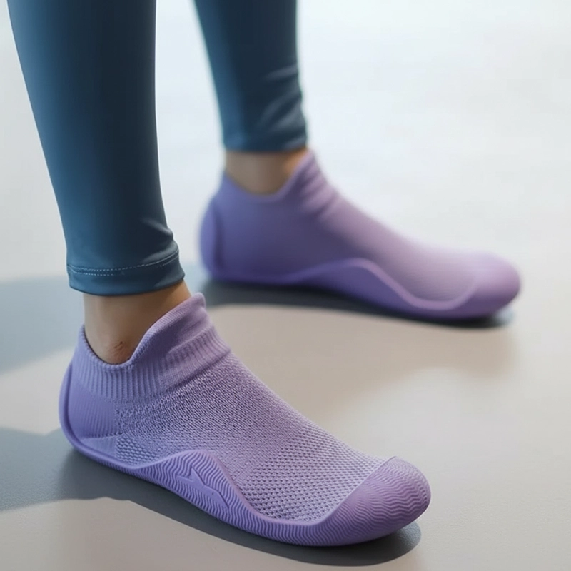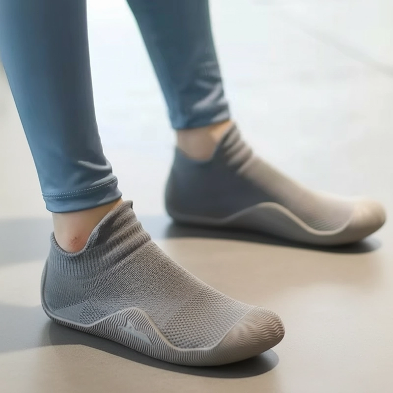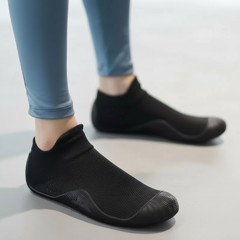 La semelle en caoutchouc assure une bonne adhérence, même sur sol mouillé ou sec. Marchez en toute confiance pendant le yoga, le sport ou à la plage.