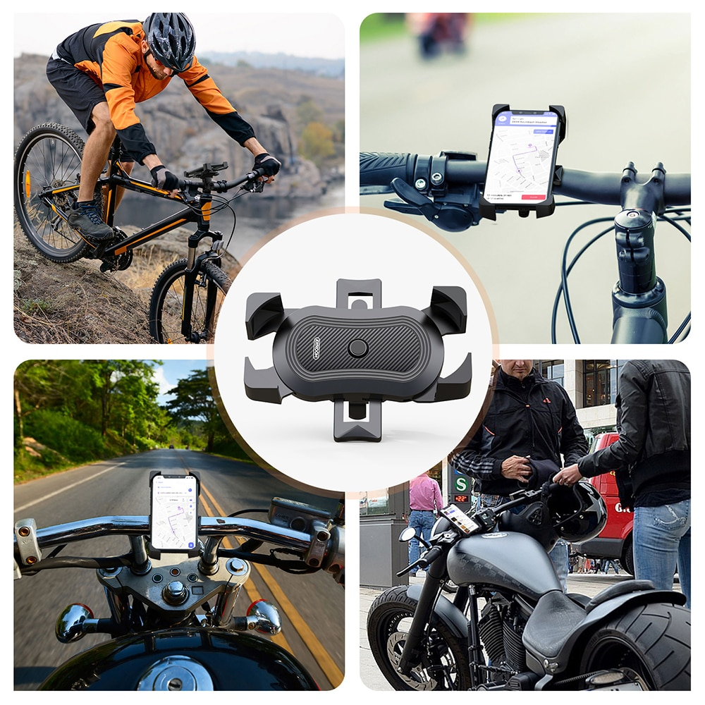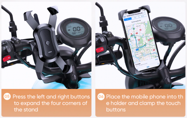 Ce support téléphone vélo dispose d’une manipulation à une main qui rend votre trajet extrêmement simple. Si vous souhaitez vous arrêter pour prendre rapidement une photo pendant votre balade, il est rapide et facile de retirer votre téléphone du support et de le remettre en place une fois terminé. À tout moment, pour retirer le téléphone, il suffit d’appuyer sur les barres de déverrouillage.