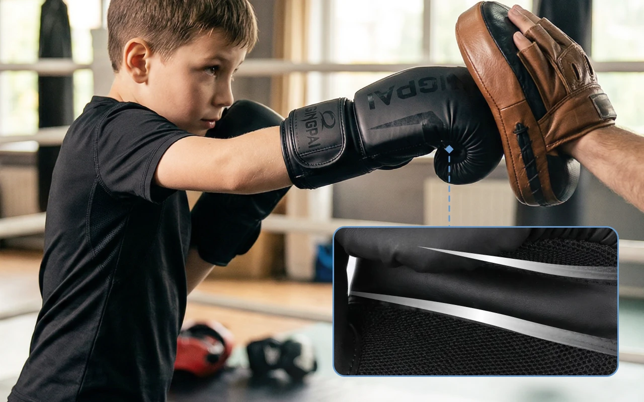 La mousse triple épaisseur absorbe les chocs, protégeant ainsi les doigts des blessures. La coque extérieure en PU durable résiste à l'usure, idéale pour une utilisation régulière.