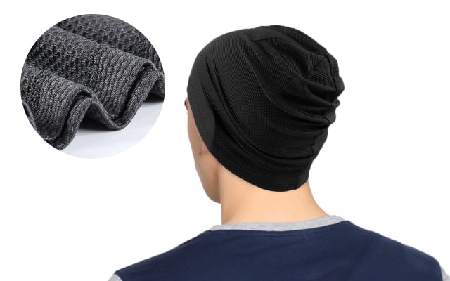 Le matériau extensible de notre bonnet de course assure un ajustement confortable et sécurisé pour toutes les tailles et formes de tête.