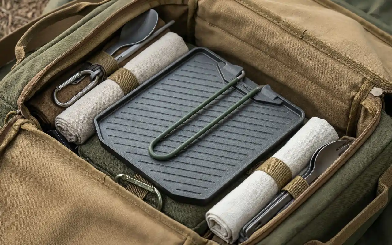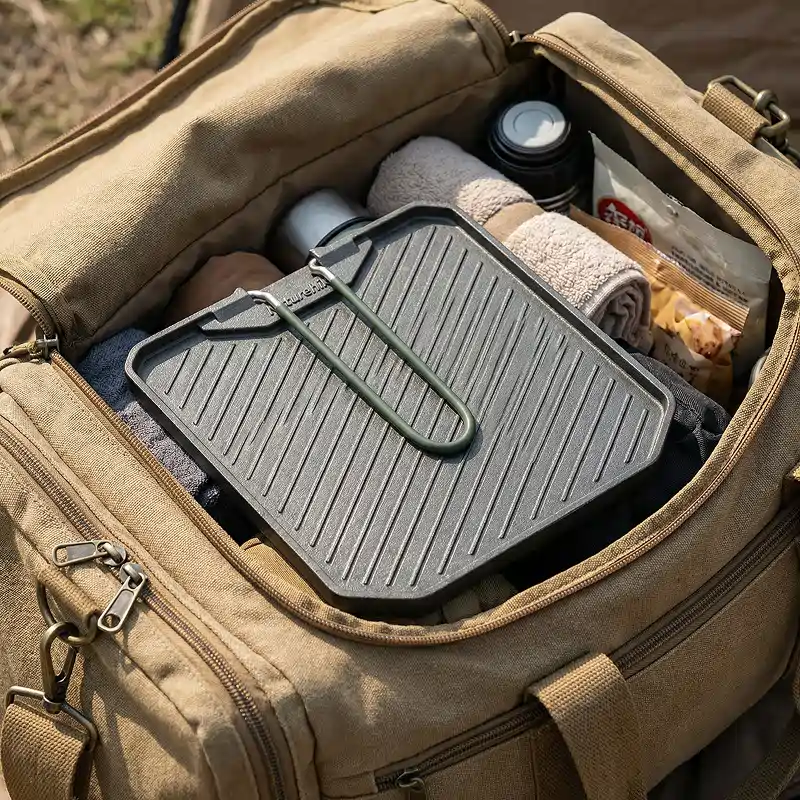 Je l’ai achetée pour des sorties en kayak. Elle tient dans mon sac étanche, se déplie en quelques secondes et je peux faire frire du poisson au bord de la rivière sans que rien n’accroche à la surface.