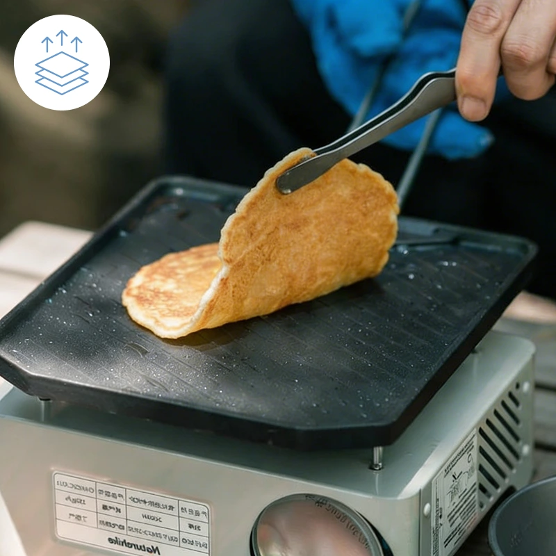 J’ai utilisé cette poêle carrée sur un petit brûleur à gaz pendant un festival de musique. Les sandwichs grillés sont restés croustillants, le fromage a glissé facilement et j’ai presque pas eu à frotter.
