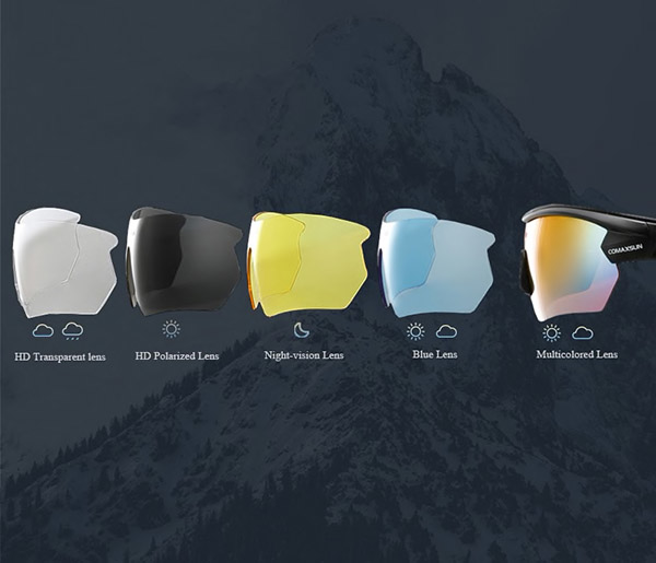 ✔️ OPTIONS DE VERRES VARIÉES — 5 couleurs de verres optiques de qualité au choix. Adaptées à différentes conditions lumineuses, elles peuvent être changées selon la météo.