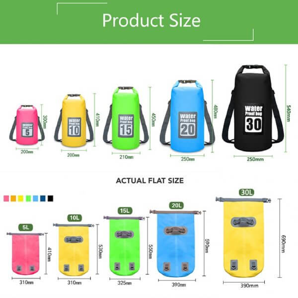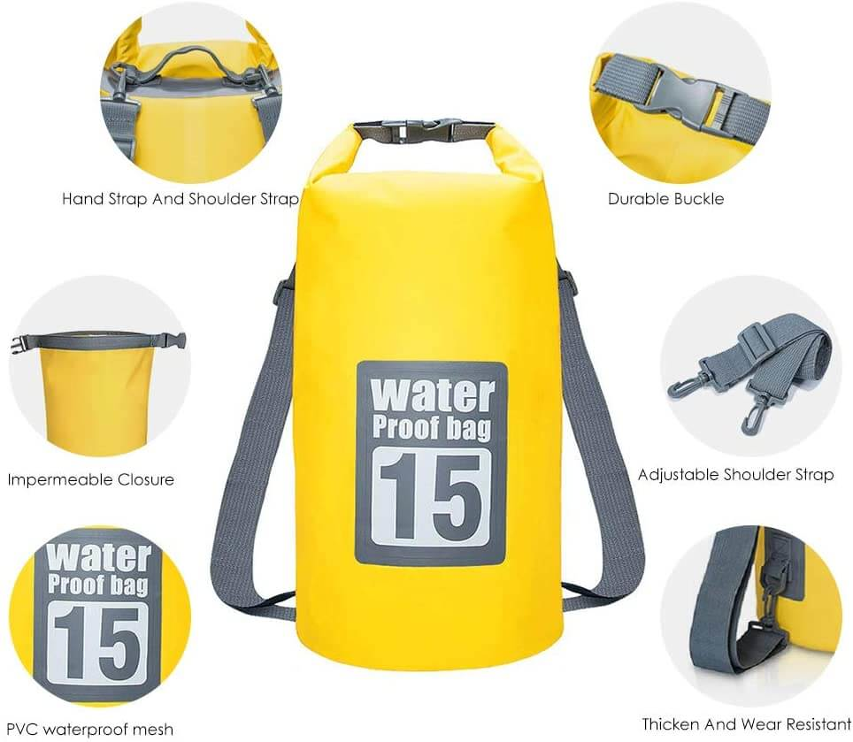 Disponible en tailles 5, 10, 15, 20 et 30 litres pour organiser et protéger facilement tout votre équipement, des couches de survie aux téléphones portables et appareils photo. C’est le sac léger parfait pour le rafting, le kayak, la plage, le camping, la randonnée, la plongée et toutes autres activités où vous souhaitez protéger vos objets de valeur de l’eau.