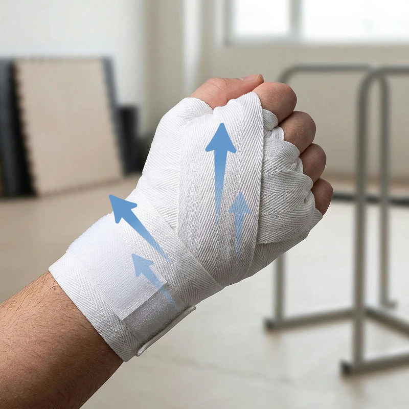 Ces bandages en coton rendent mon shadowboxing et mes rounds au sac plus sûrs. L’élasticité est parfaite, pas trop serrée, et ils ne font pas de plis sous les gants.