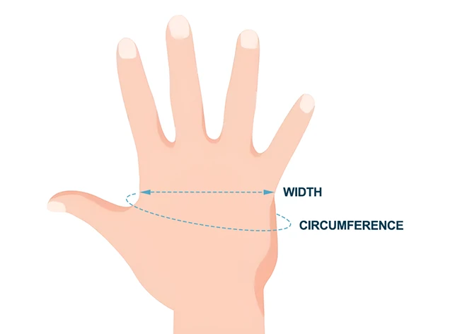 | SIZE | HAND WIDTH | PALM CIRCUMFERENCE | ||
