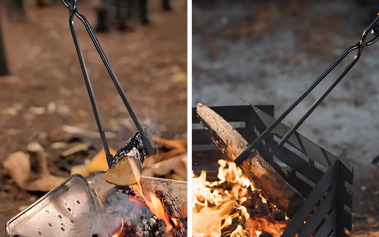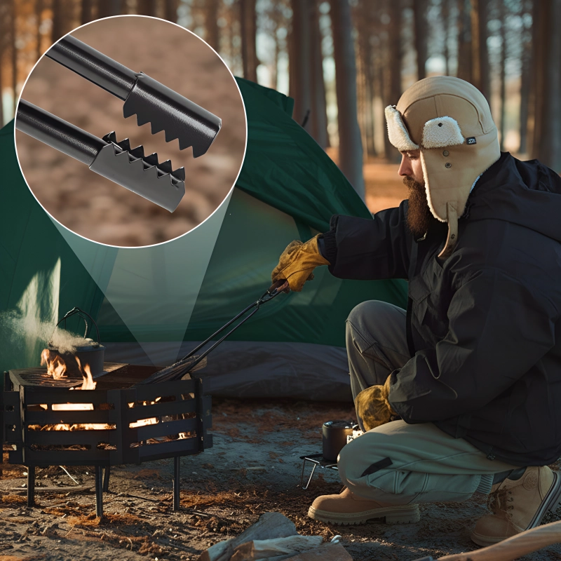 La construction en acier au carbone résiste aux conditions extérieures difficiles. Les mâchoires solides saisissent les bûches ou les braises chaudes sans se plier.