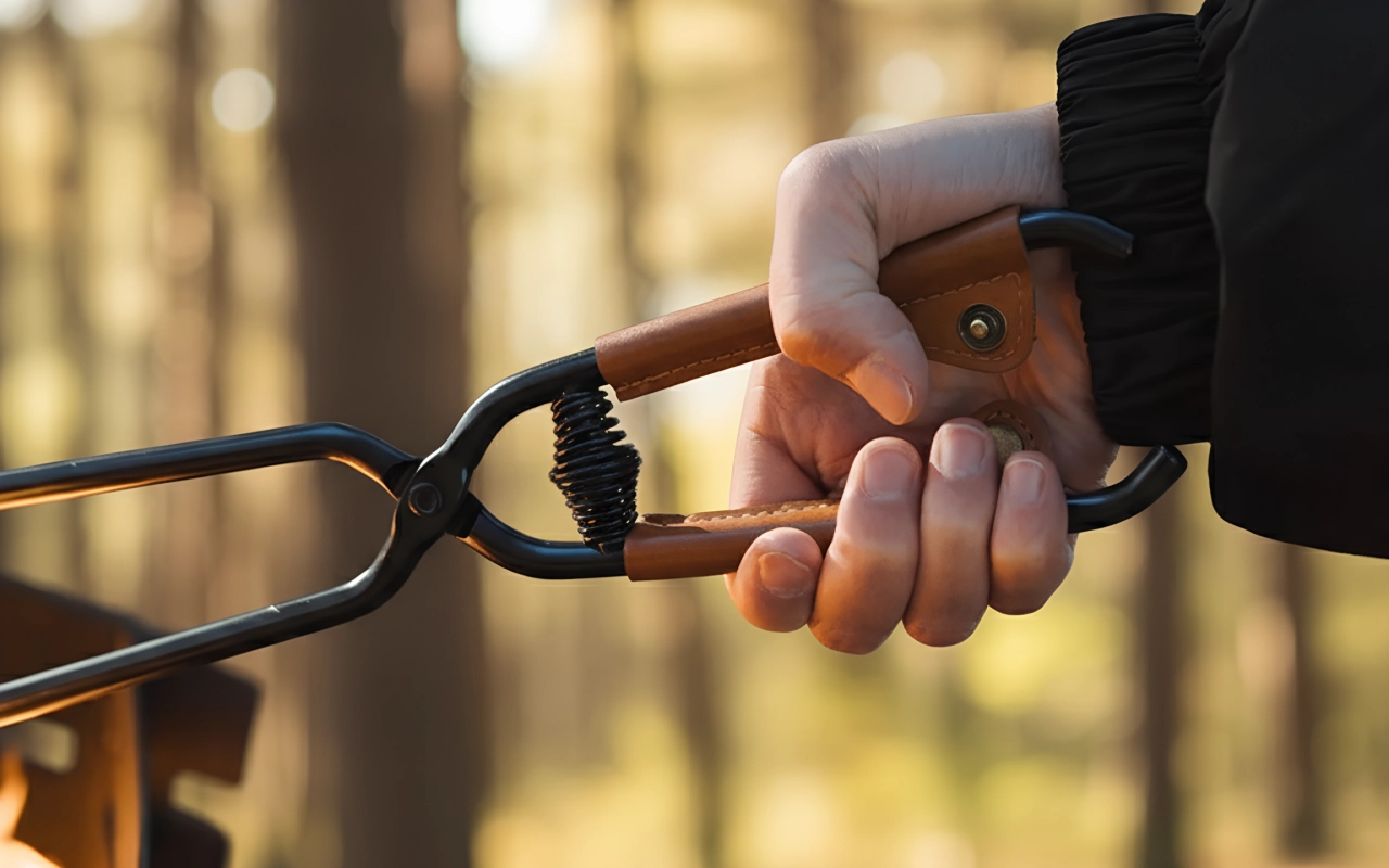 Ces pinces rendent la cuisson des guimauves et des saucisses bien plus sûre. Les mâchoires saisissent le bois fermement et ne glissent pas, même avec des gants.