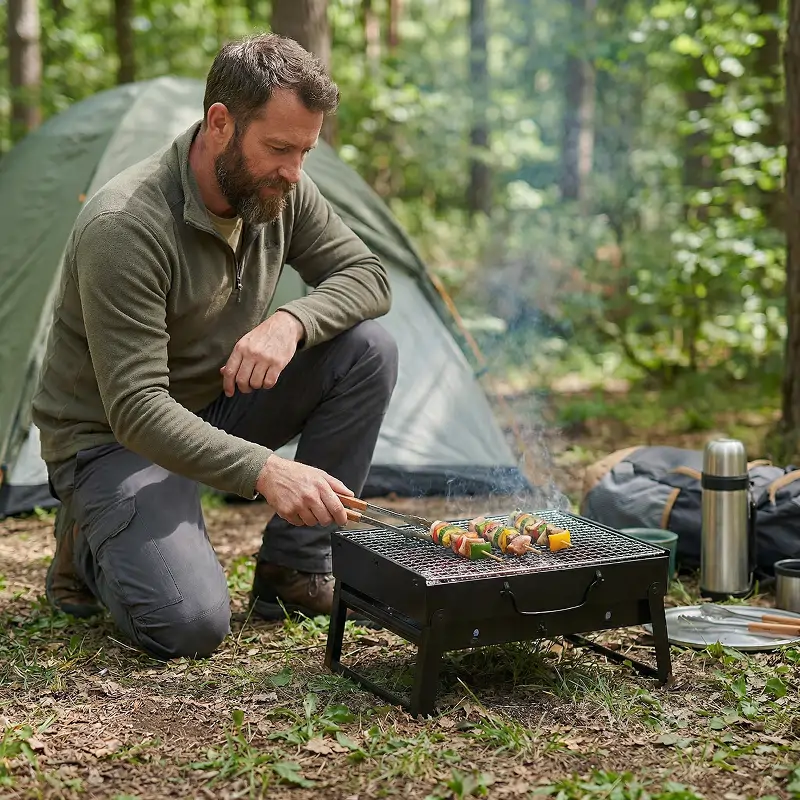 J’ai emmené ce petit grill en camping le week-end dernier et je l’ai adoré. Installé en quelques secondes, il a cuit les burgers de manière uniforme et s’est rangé facilement dans le coffre.