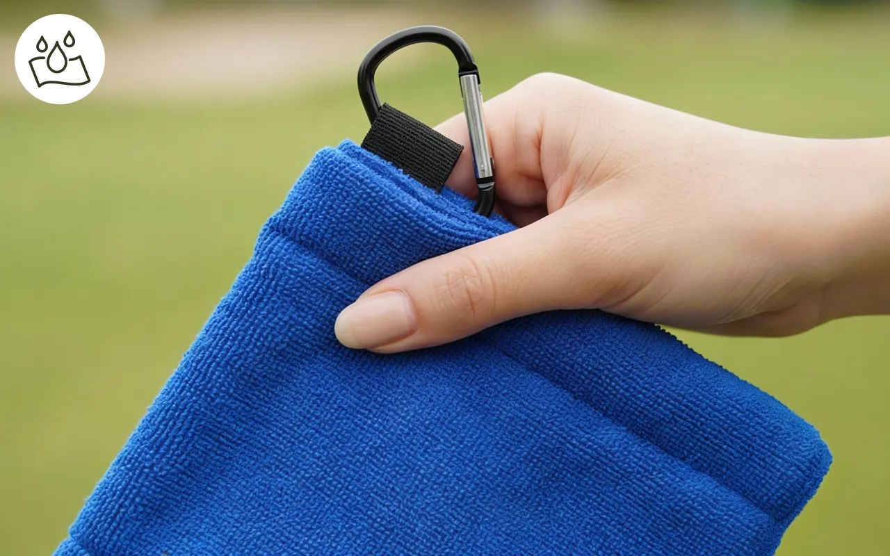 On dirait qu’elle a été faite pour les golfeurs. Le mousqueton est solide et la serviette sèche très vite, jamais eu d’odeur de moisi.