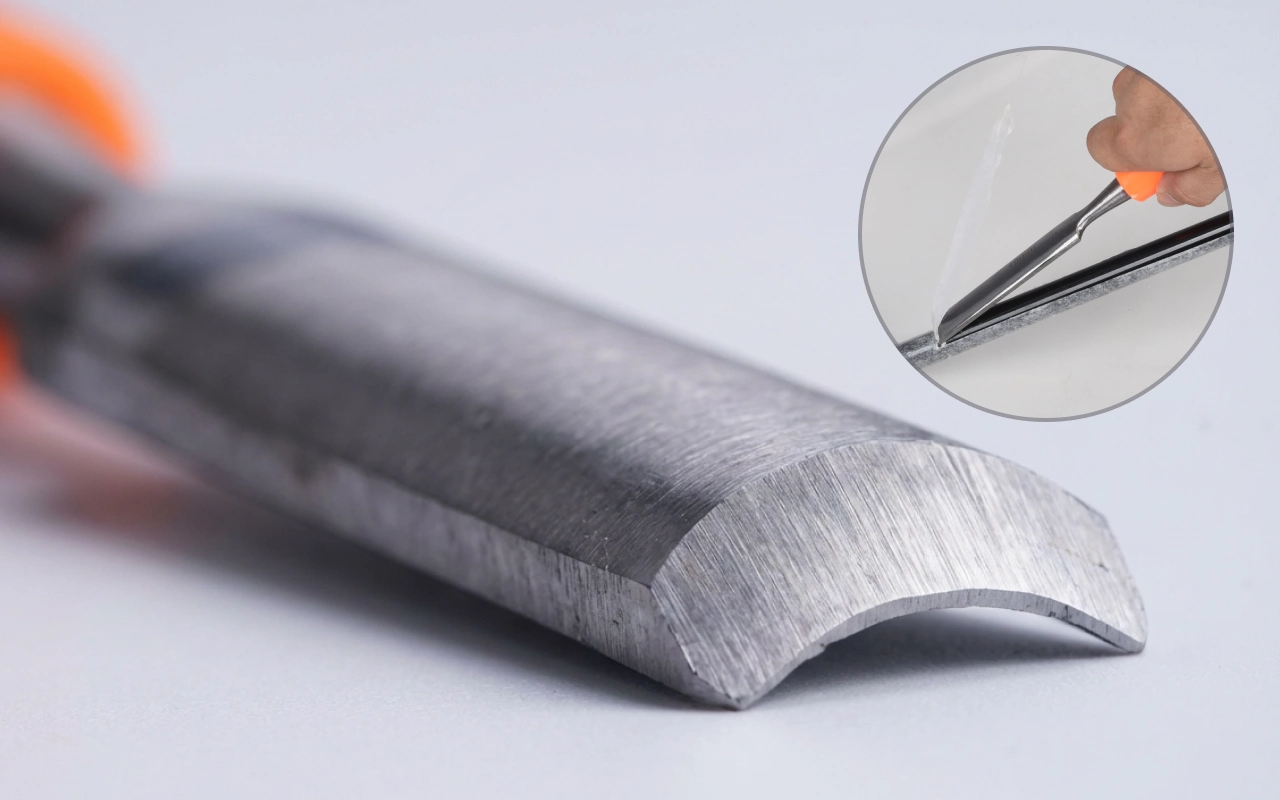 La lame tranchante glisse sous les couches adhésives pour des résultats instantanés. Fini les minutes perdues à décoller ou gratter des bandes difficiles.