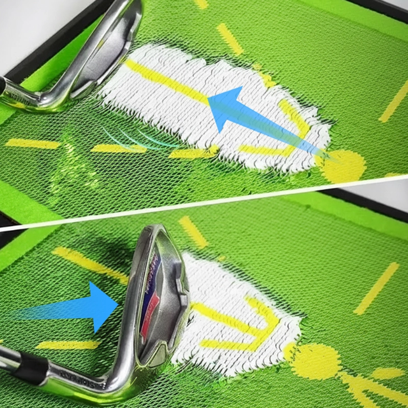 Notre tapis d'entraînement montre clairement les marques d'impact, vous aidant à identifier et corriger les erreurs de swing courantes.