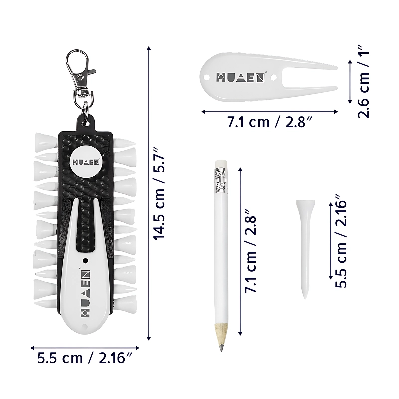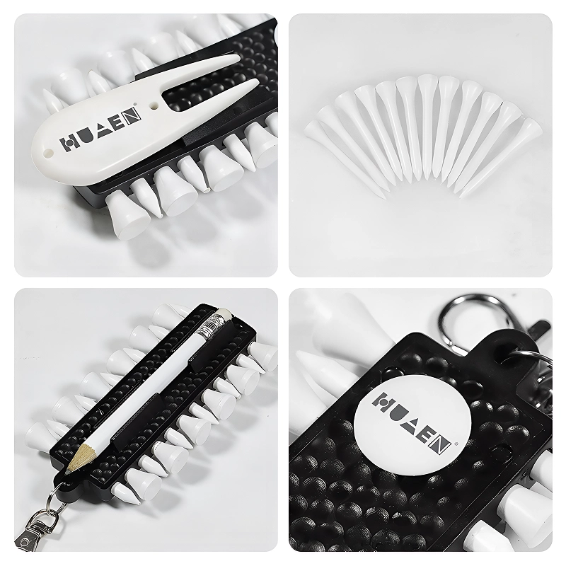 Ne cherchez plus jamais un petit accessoire pendant le jeu. Le set de tees Threo range chaque outil dans un seul support compact. Garder tout ensemble, c’est finir avec la perte de temps. Design durable et compact pour un transport sans effort.
