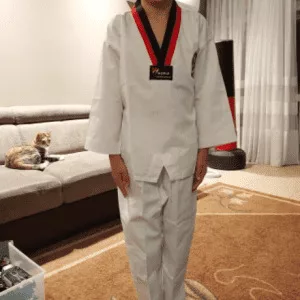 Excellent dobok ! J’adore que le pantalon soit élastique et doté d’un cordon de serrage. J’étais sceptique concernant la taille, mais il s’est avéré parfaitement ajusté. Très bon achat !