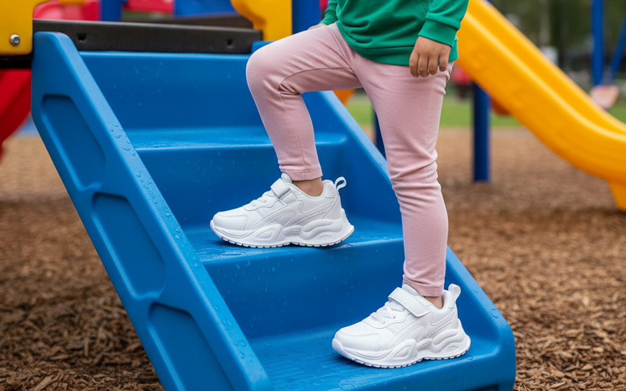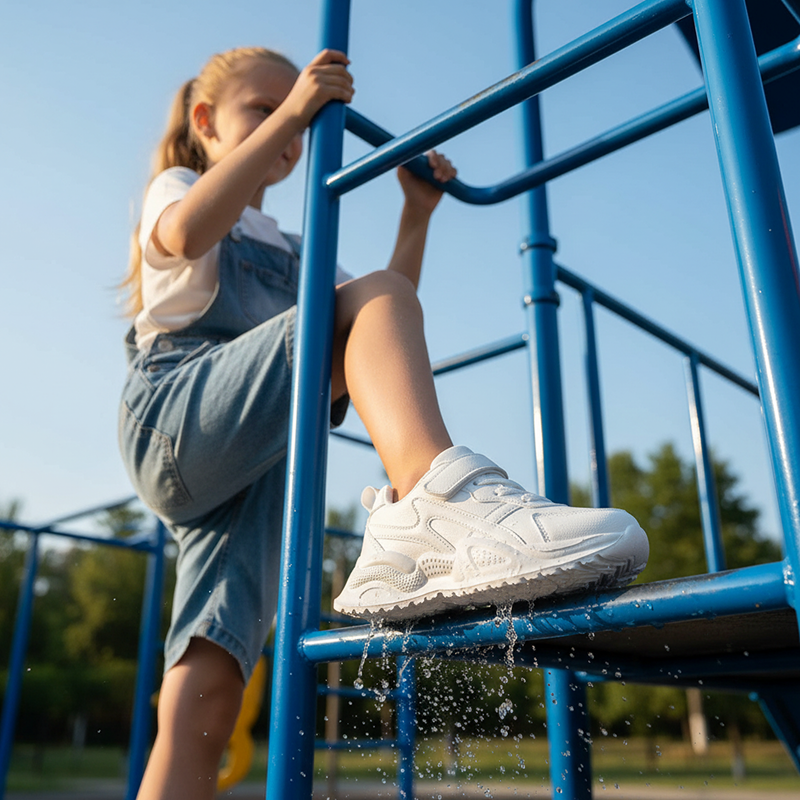Les semelles épaisses aident à éviter de glisser sur les sols mouillés des aires de jeux ou des gymnases. Les enfants bougent en toute sécurité partout où ils explorent.