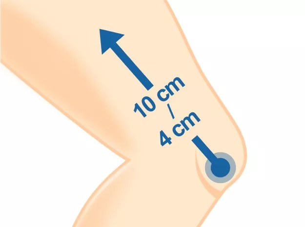 - 2. Enroulez le mètre ruban autour de la partie la plus large de votre cuisse, à environ 10 cm/4" au-dessus du milieu de votre rotule.