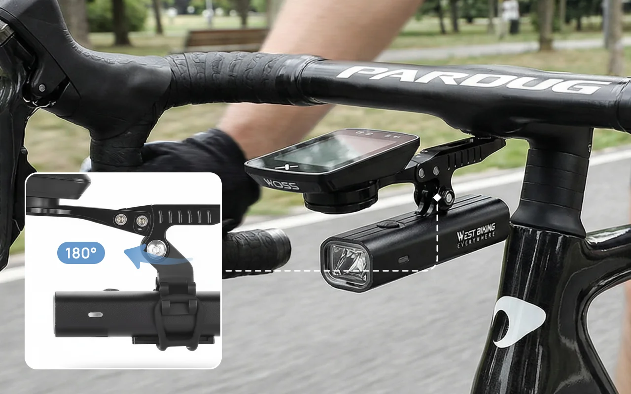Se sent solide une fois fixé et garde tout bien organisé. J’adore pouvoir régler l’angle à tout moment en roulant.