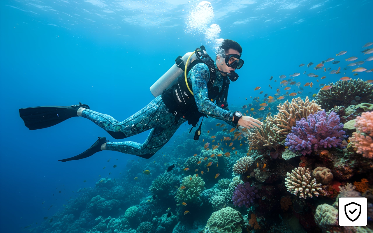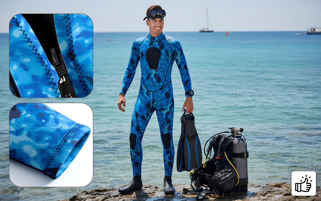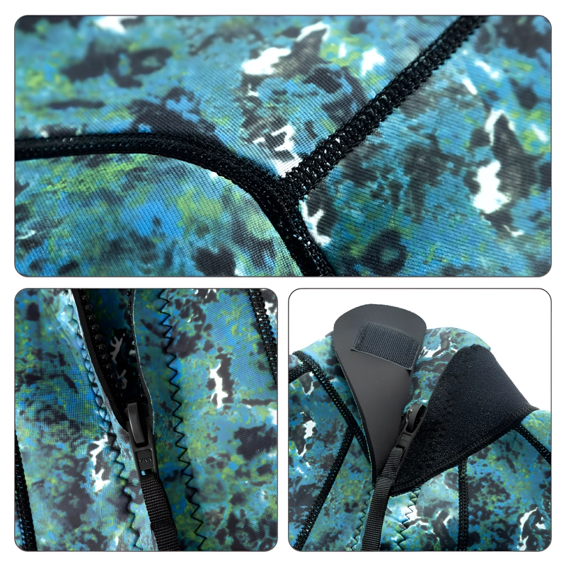 Le motif camouflage vous cache des créatures marines et des dangers. La construction durable protège la peau des piqûres, éraflures et objets tranchants.