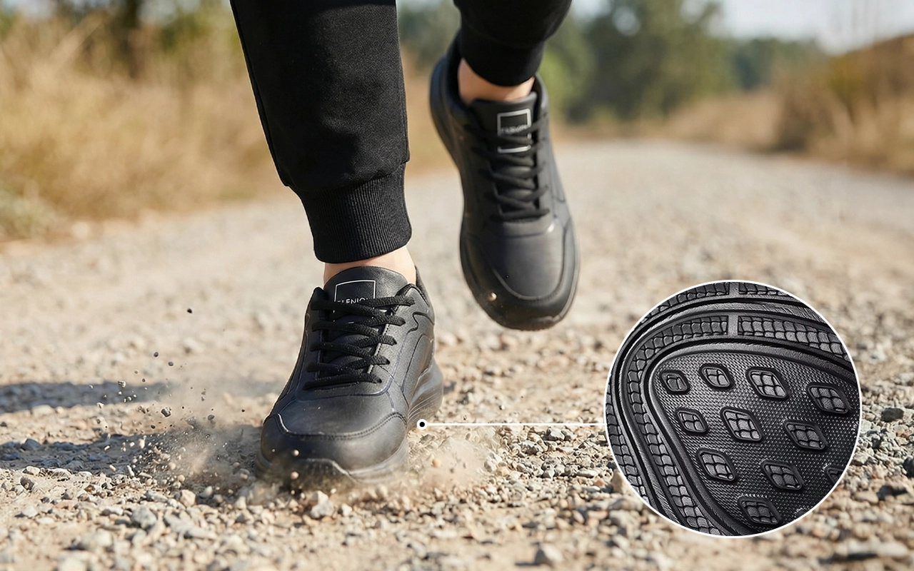 La semelle antidérapante spéciale vous assure sécurité sur les surfaces mouillées. Déplacez-vous en toute confiance sur tous les terrains sans souci.