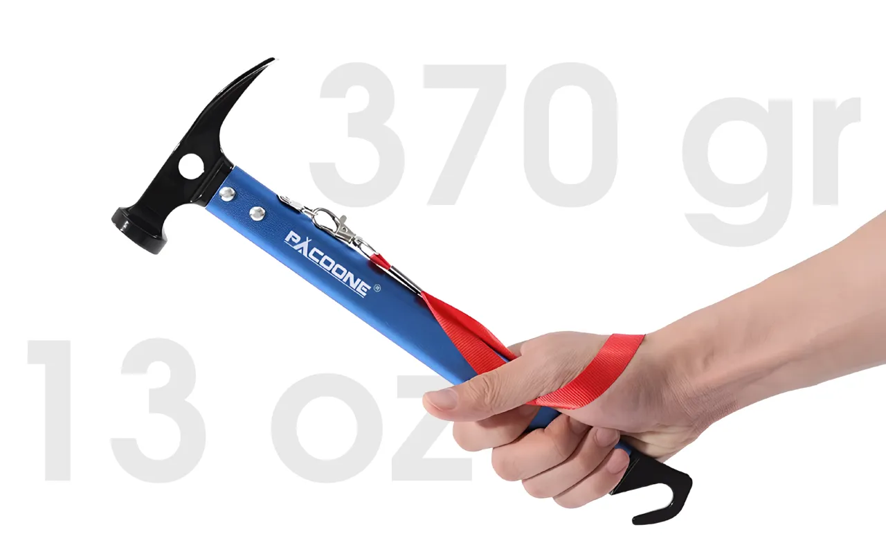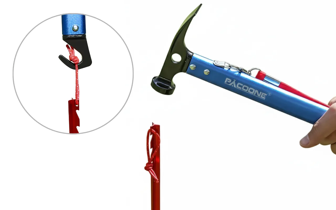 Le marteau remplit toutes mes fonctions. Je l’ai utilisé pour les piquets de tente et pour ajuster la tension des cordes. Super pratique !