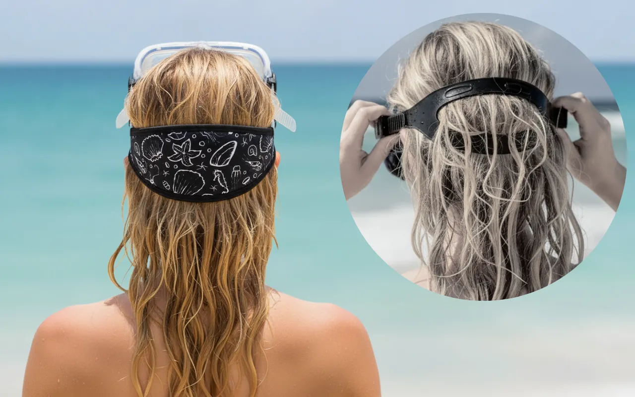 Porter mon masque est tellement plus confortable maintenant, fini de tirer sur mes longs cheveux ! La sangle glisse facilement et rend la natation amusante.