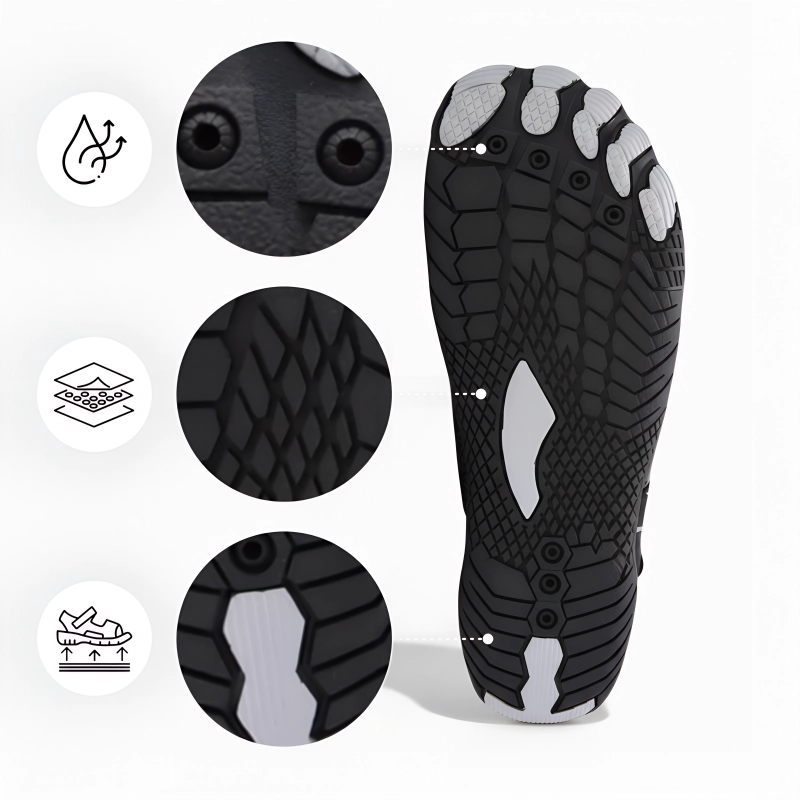 Des semelles spéciales préviennent les glissades ou chutes involontaires sur sol mouillé. Marchez en toute sécurité en marchant, nageant ou explorant des sentiers rocheux.