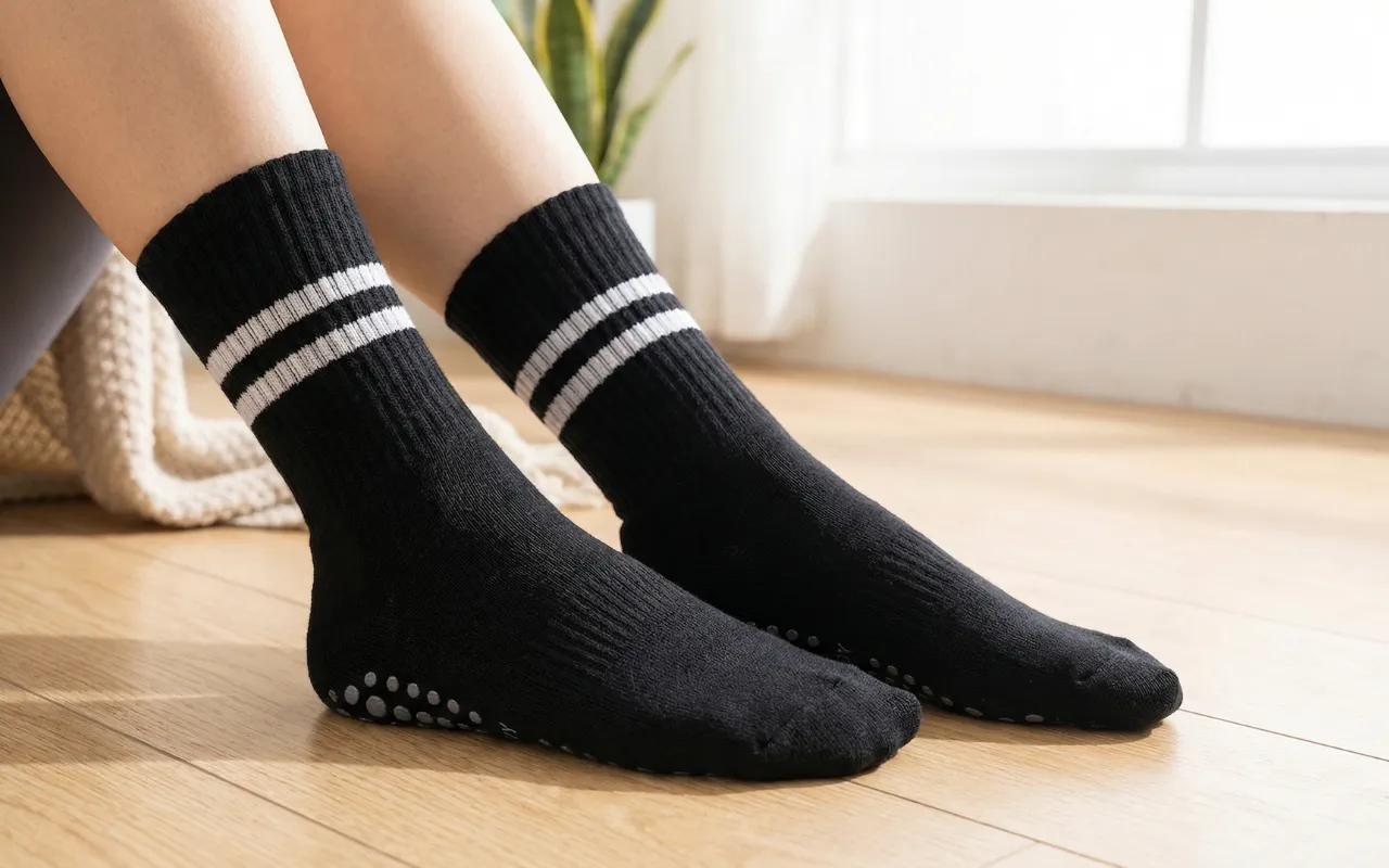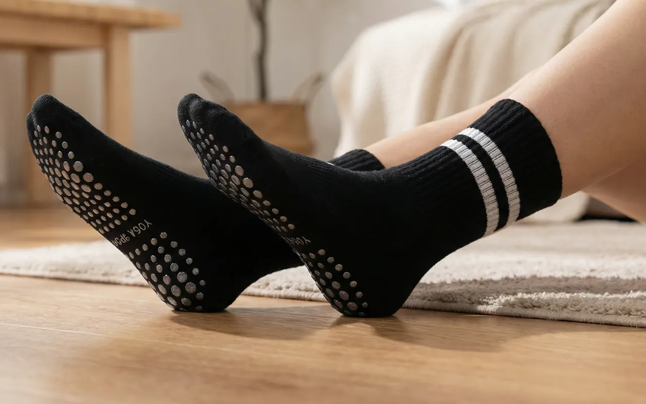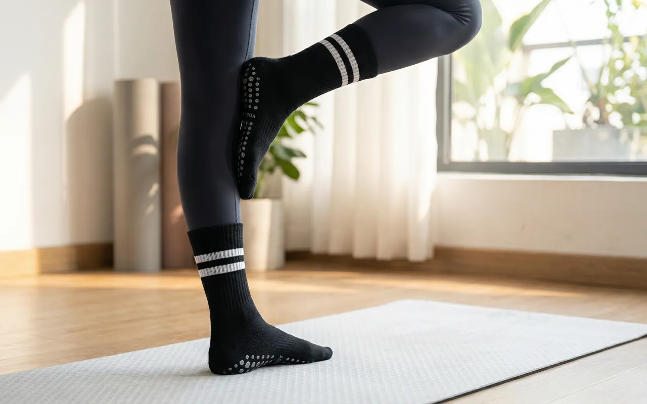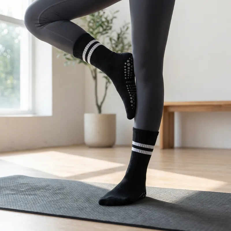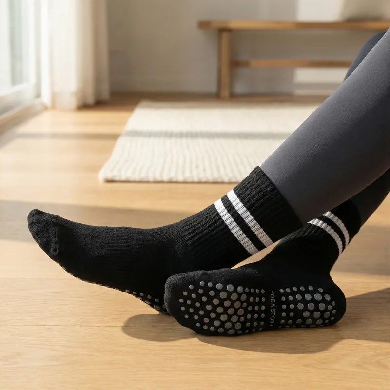 Des points de silicone recouvrent le dessous pour un soutien maximal de la traction. Chaque pas reste stable, que vous pratiquiez le yoga ou le pilates.