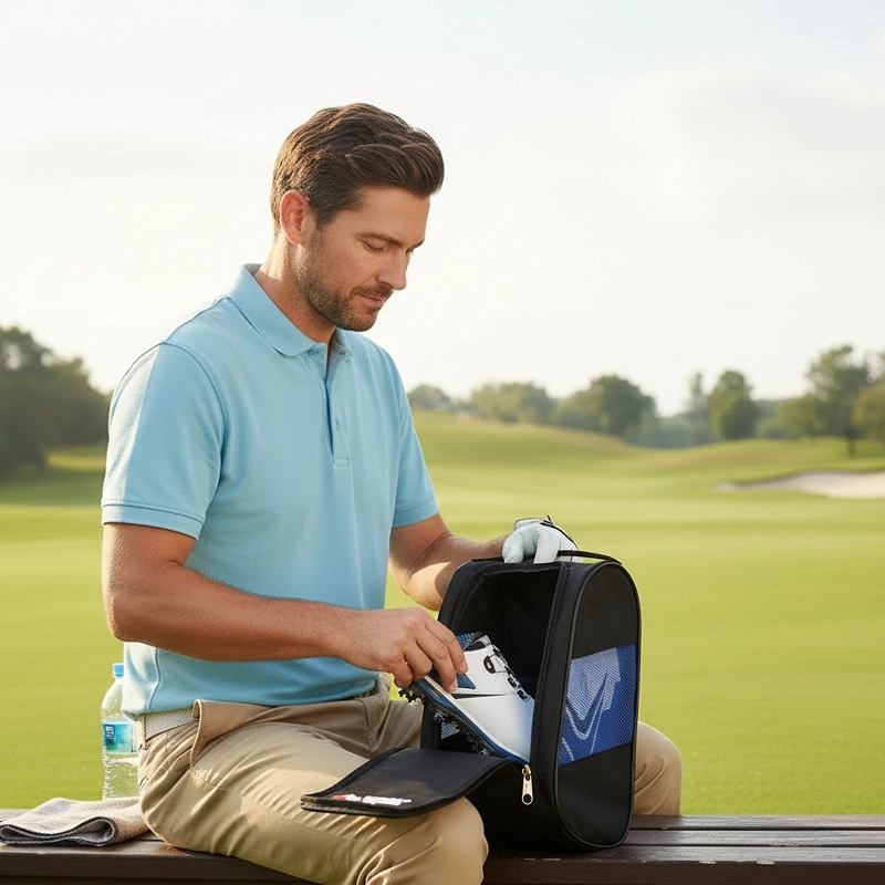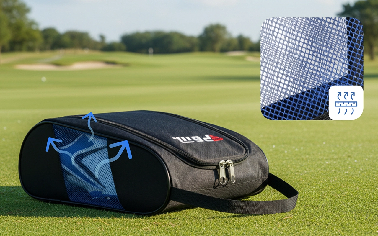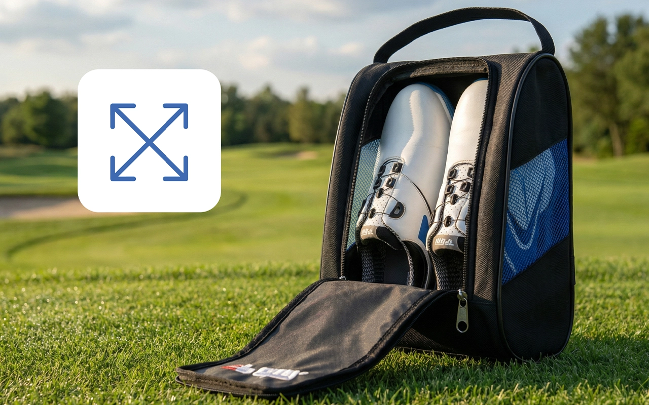 Ce sac à chaussures garde mes chaussures de golf fraîches et sèches entre les parties. Les côtés en mesh sont excellents et j’adore la facilité avec laquelle on peut tout ranger.