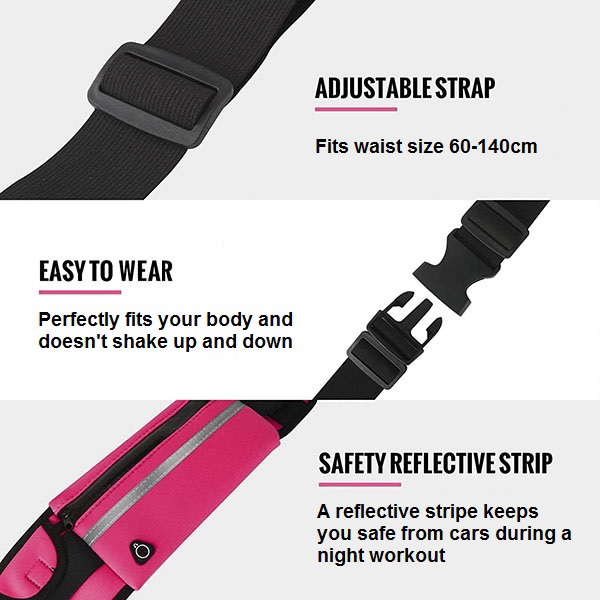 Notre sac pour coureur est doté d’une sangle réglable qui peut être facilement ajustée à la taille de votre taille. Il comporte également une bande réfléchissante à l’avant. Lorsqu’elle est exposée à la lumière dans l’obscurité, elle renvoie la lumière vers sa source, vous rendant visible en conditions de faible luminosité et prévenant les accidents de la route.