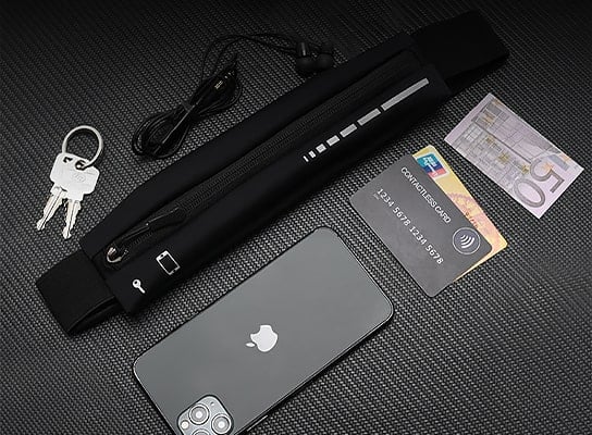 Le sac banane est en néoprène et épouse parfaitement votre corps pendant la course. Il est compact tout en étant spacieux : il peut contenir votre téléphone, une clé, un gel désinfectant et de nombreux petits objets.