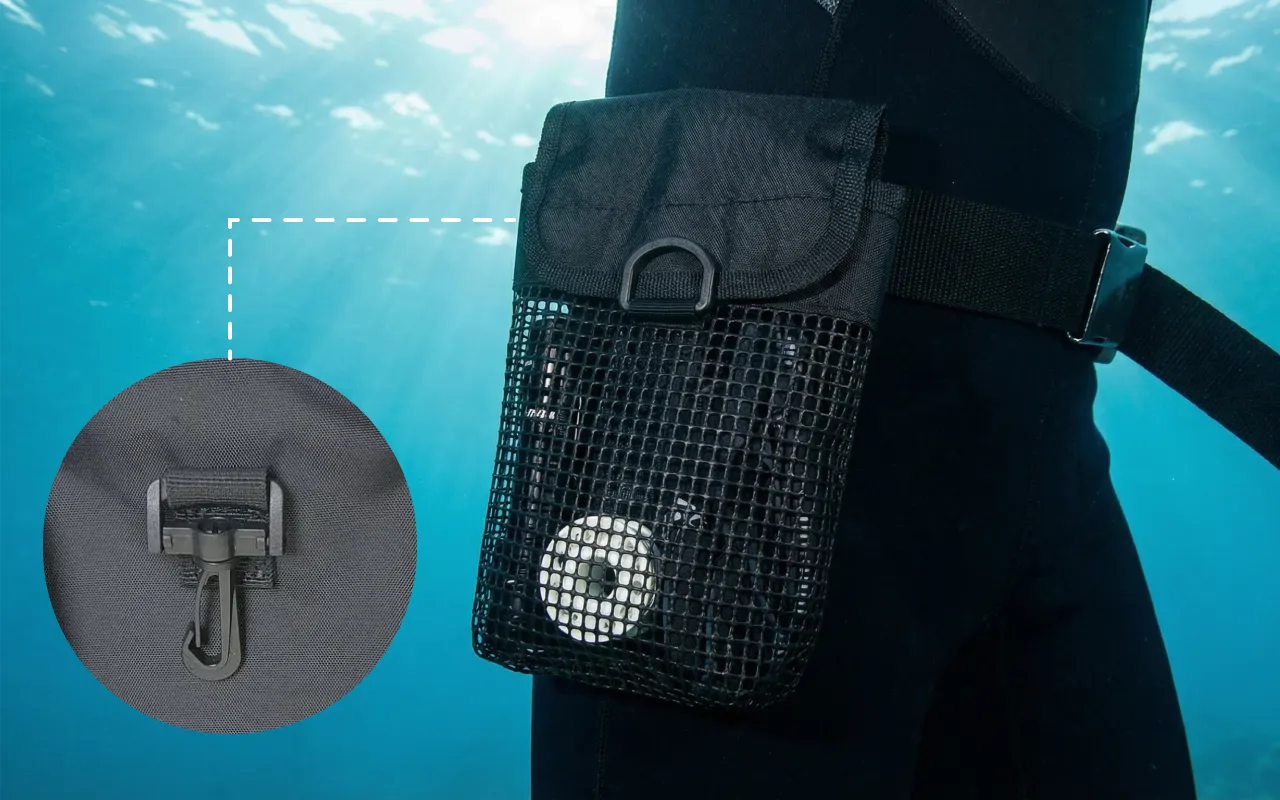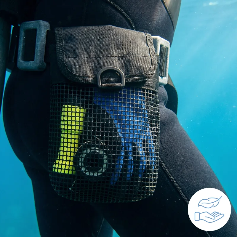 L'eau s’échappe facilement à travers le filet, gardant le contenu au sec. Vous n’avez pas à vous soucier d’un équipement détrempé après la plongée.