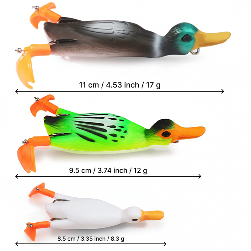 Mon leurre canard a pris des coups, mais jamais déchiré ! Lancer après lancer, il flottait très réaliste. Truites et black-bass devenaient dingues. Indispensable pour les sorties pêche.