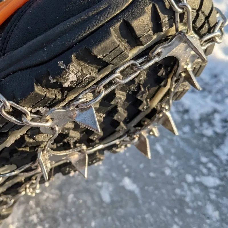 Je les utilise par-dessus mes chaussures de sécurité sur les chantiers. Les parkings couverts de glace ne me font plus peur. Les pointes métalliques accrochent très bien la neige tassée.