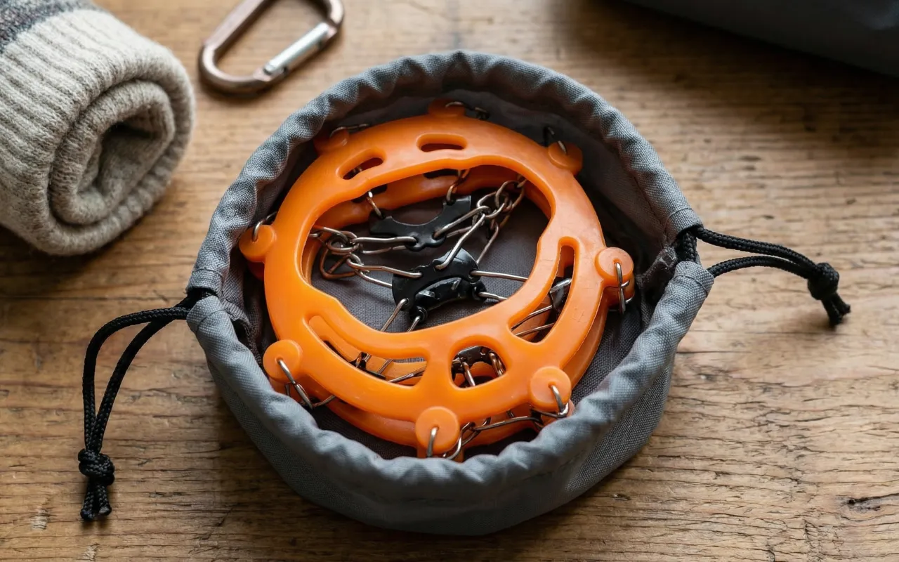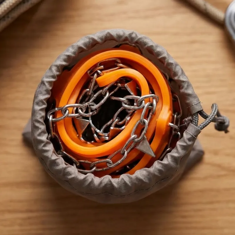 Je garde ces crampons dans ma voiture pour les tempêtes de neige surprises. Ils s’étirent vite par-dessus les baskets et accrochent fermement les parkings verglacés. Je me sens bien plus stable.