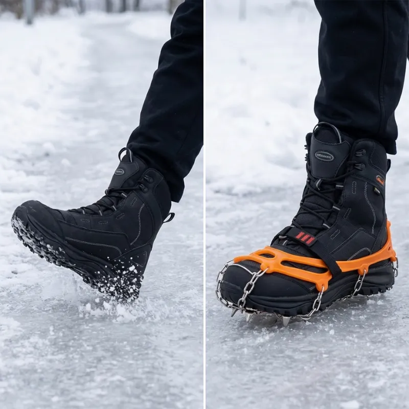 Je les utilise quand je déneige l’allée à 5 h du matin. Les zones sombres et glissantes ne me dérangent plus. Les pointes mordent dans la glace et mon dos reste en sécurité.